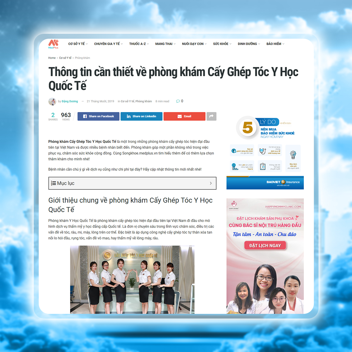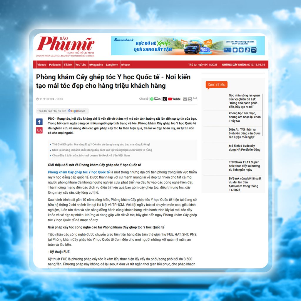 Phòng khám cấy ghép tóc Y học Quốc tế trở thành hiện tượng truyền thông trong ngành cấy tóc tự thân. Sự xuất hiện liên tục trên các tờ báo lớn minh chứng cho thấy sự uy tín, chất lượng và hiệu quả thực tế mang lại.