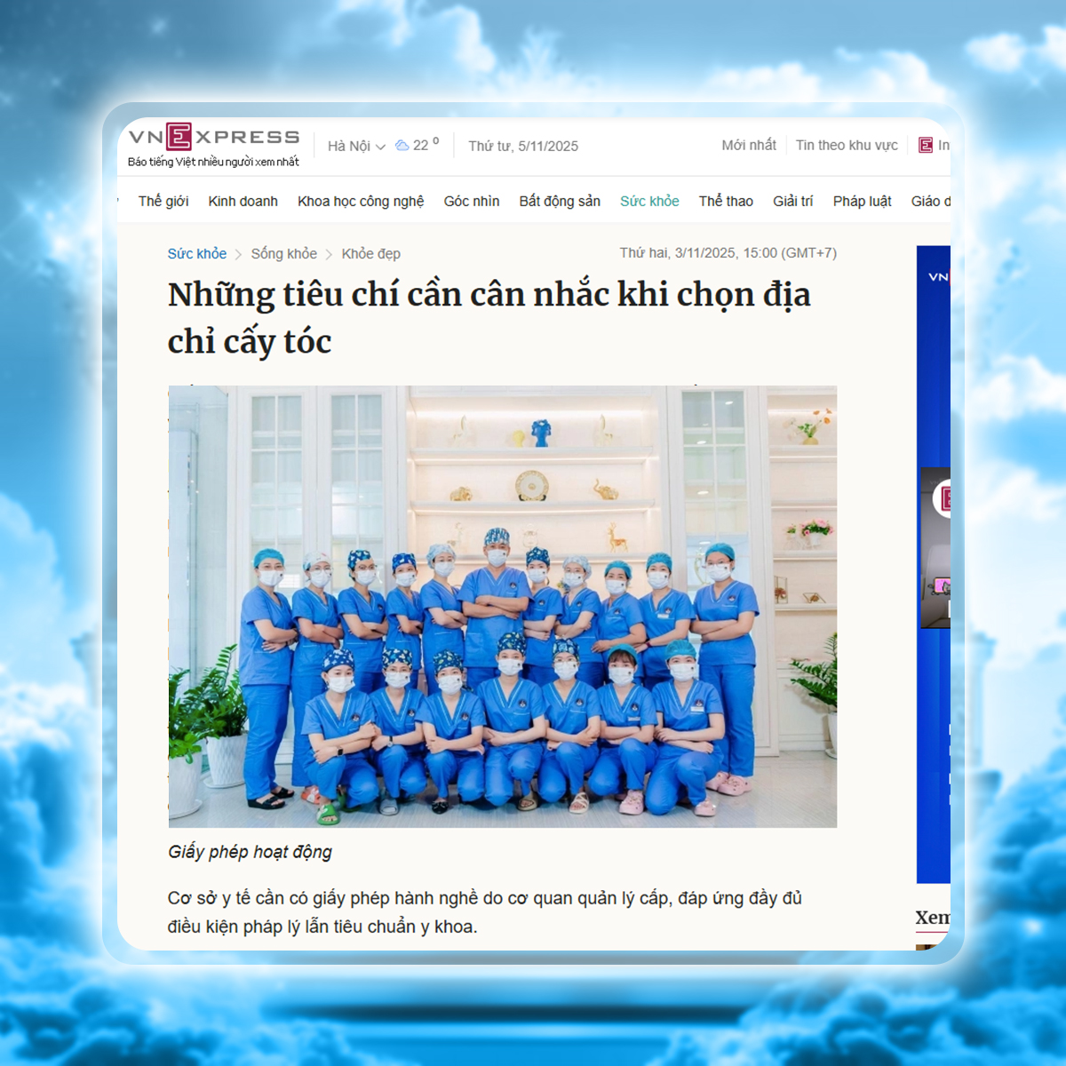 Không chỉ Dân trí, báo VnExpress cũng có chia sẻ về gợi ý tiêu chí giúp người đọc dễ dàng chọn nơi uy tín để cấy tóc. Trong đó, Phòng khám Cấy ghép tóc Y học Quốc tế được nêu bật nhờ đội ngũ bác sĩ giỏi chuyên môn, công nghệ hiện đại cùng chính sách bảo hành trọn đời.